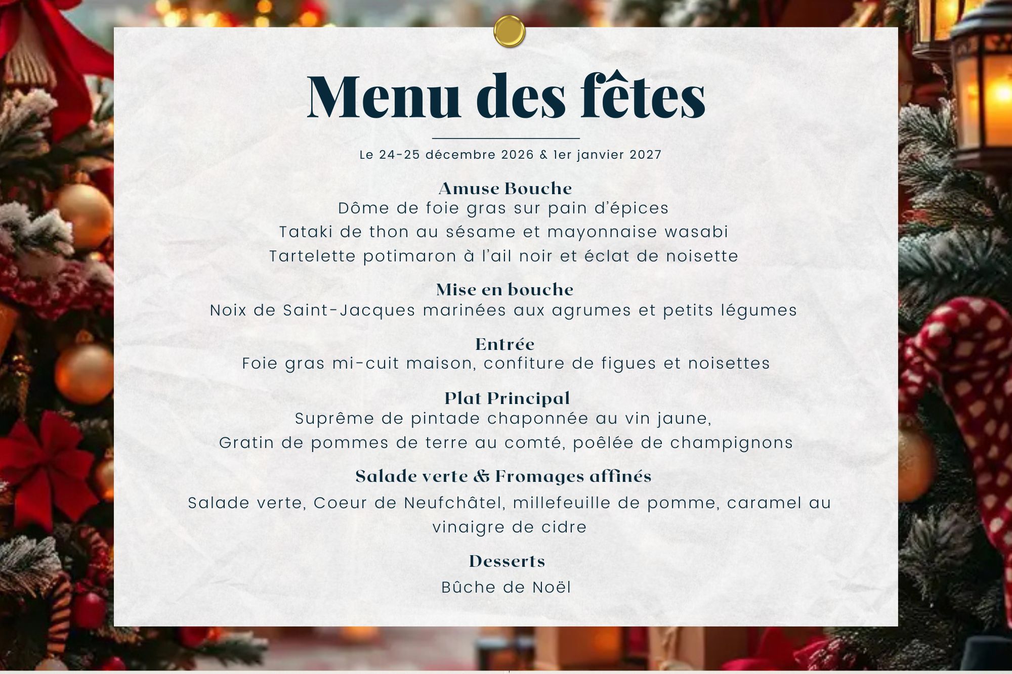 Prolongez la magie de Noël en douceur à bord de l’Escapade lors d’un déjeuner croisière le long de la Seine.